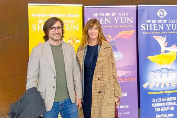 2026年3月3日,美国神韵纽约艺术团在西班牙毕尔巴鄂的巴斯克王宫剧院(Palacio Euskalduna)上演了今年当地首场演出。资深航太工程师观Iñigo Elorza(左)看了演出。(Maya Marinova/大纪元)