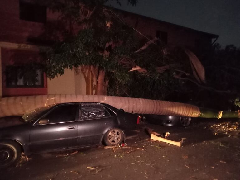 Temporal derriba palmera sobre un auto y deja sin luz al barrio Jara