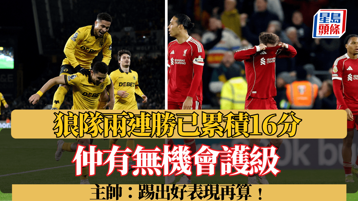 周二英超快車,狼隊主場2:1擊敗利物浦,連同上輪勇挫阿士東維拉,聯賽兩連勝累積至16分。這支包尾大幡最近越踢越好接連搶分,與護級區域收窄至11分,仍有機會逃出生天,該隊主教練羅拔艾華士表示不會考慮護級問題,餘下比賽每場都全力踢出好表現,之後才考慮來季的事。 連贏兩支前五位球隊創歷史 狼隊今場憑洛迪高高美斯和安達尼圖各入1球,2:1擊敗賽前排第5位的利物浦,全取3分。而該隊在上周末主場2:0勇挫三哥