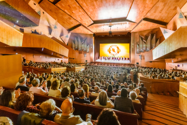 2026年3月3日晚,美国神韵纽约艺术团在西班牙毕尔巴鄂的巴斯克王宫剧院(Palacio Euskalduna)上演了今年在当地首场演出,票房爆满。(君卓/大纪元)
