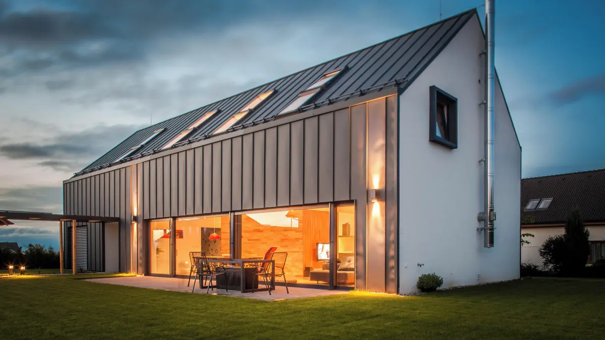 Na první pohled působí tento dům obdélníkového půdorysu se sedlovou střechou a bez zbytečných architektonických gest docela pokorně. Jeho interiér ale velmi překvapí. Prim v něm totiž hraje ostře červená barva.