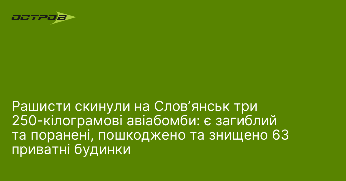 "Словʼянськ зазнав ворожого авіаудару. Вчора, близько 22:40, ворог скинув на місто три ФАБ-250, влучивши у приватну забудову. Пошкоджено щонайменше 63 приватні будинки. Три з них зруйновані повністю", - повідомив у Телеграм вранці 4 березня начальник міської військової адміністрації Вадим...