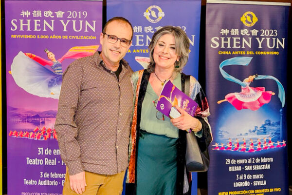2026年3月3日晚,美国神韵纽约艺术团在西班牙毕尔巴鄂的巴斯克王宫剧院(Palacio Euskalduna)上演了今年在当地首场演出。前巴斯克大区高级警官Maria Almudena Santos Criado和丈夫Ricardo Fernandez Garrido一起观看了演出。(王亦笑/大纪元)