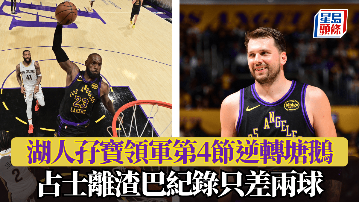 周二NBA常規賽湖人對塘鵝,「孖寶」當積(Luka Doncic)和勒邦占士(LeBron James)帶領紫金軍於末節強勢反撲,打出一波14:0的攻勢,成功以110:101反勝塘鵝,取得三連勝。當積今仗交出27分、10個籃板及7次助攻的準「三雙」成績,而勒邦占士亦有21分進帳。 湖人第4節甦醒 湖人今仗贏得並不輕鬆,全隊出現多達21次失誤,並在第4節一度落後8分。然而,在比賽的關鍵時刻,球隊終於