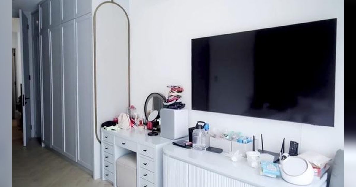 Kamar tidur utama milik Tarra Budiman dan Gya Sadiqah menawan dengan desain yang luas dan modern, menggabungkan estetika minimalis dengan kenyamanan.
