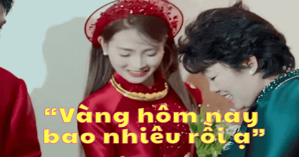 MC Huyền Trang Mù Tạt hài hước hỏi "vàng hôm nay bao nhiêu rồi ạ" ngay khi mẹ chồng trao quà cưới