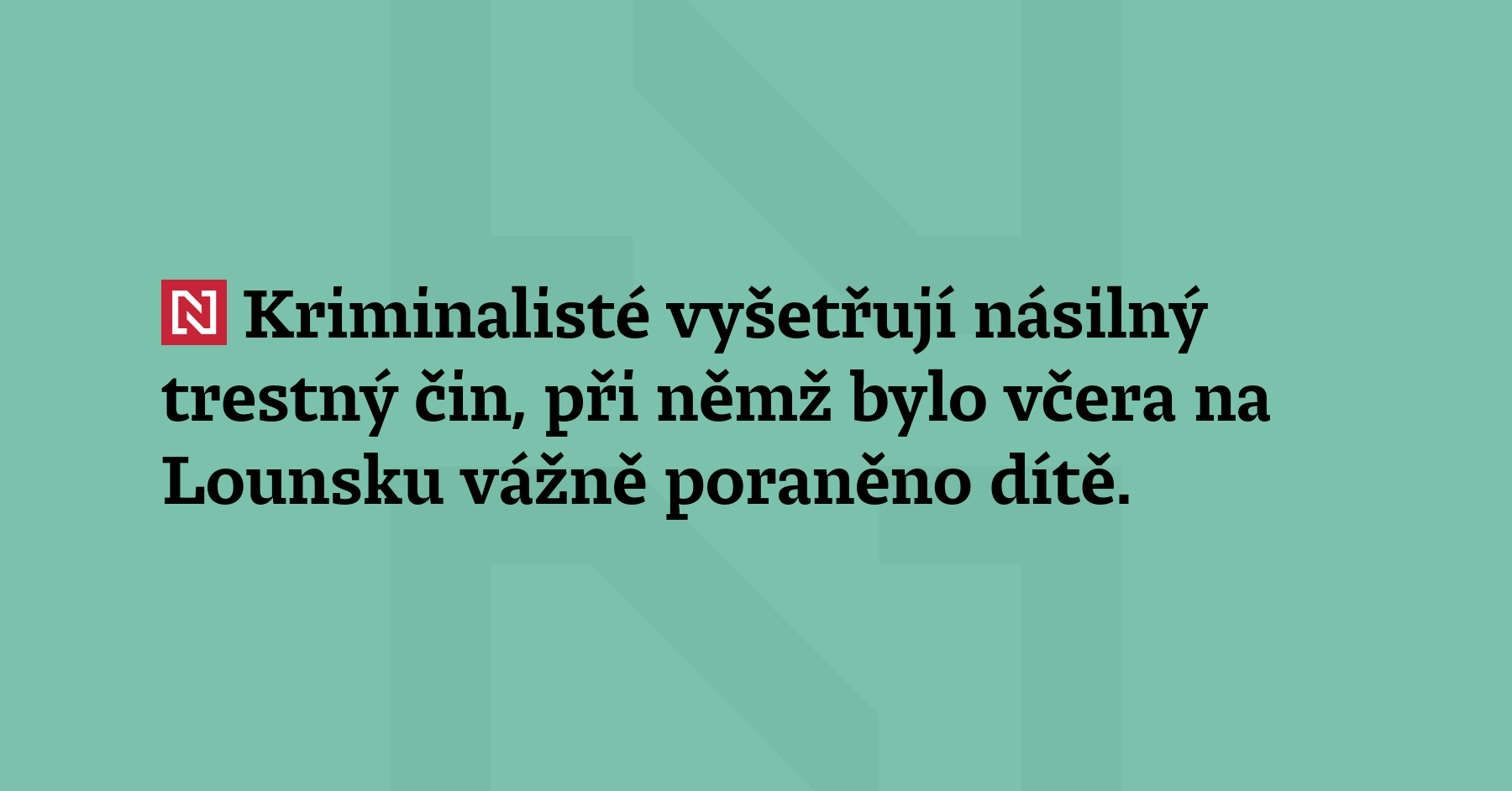 Kriminalisté vyšetřují násilný trestný čin, při němž bylo včera na Lounsku vážně poraněno dítě. V souvislosti s případem policie zadržela jednoho člověka, píše na síti X. Dítě záchranáři letecky přepravili do nemocnice.