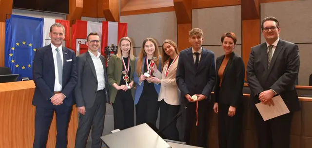 Großer Erfolg für die JusHAK Eisenstadt: Beim österreichweiten "Moot Court"-Bewerb in Innsbruck sicherte sich das Team um Nicole Schiechl, Pia Dinhof und Sophie Altenburger den ersten Platz sowie die Auszeichnung für den besten Schriftsatz. EISENSTADT. Beim diesjährigen Moot Court der österreichweiten JusHAK-Schulen stellten sich die vierten Jahrgänge einem simulierten Gerichtsverfahren. In einem fiktiven arbeitsrechtlichen Fall übernahmen die Schülerinnen und Schüler die Rolle von Anwältinnen...