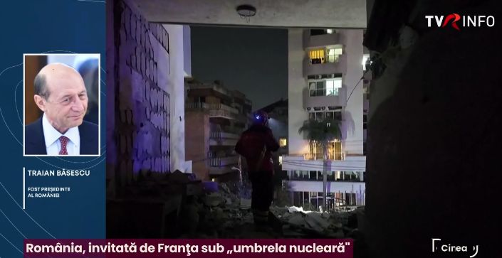 Fostul președinte al României Traian Băsescu a declarat miercuri, în direct la TVR Info, că inițiativa Franței privind "umbrela nucleară" este extrem de riscantă și avertizează că ar putea duce chiar la desființarea Alianței Nord Atlantice. The post Traian Băsescu, la TVR Info: Trecerea sub “umbrela nucleară” a Franței ar însemna desființarea NATO. Nu se poate să fii în același timp și în NATO, și cu Franța appeared first on tvrinfo.ro .