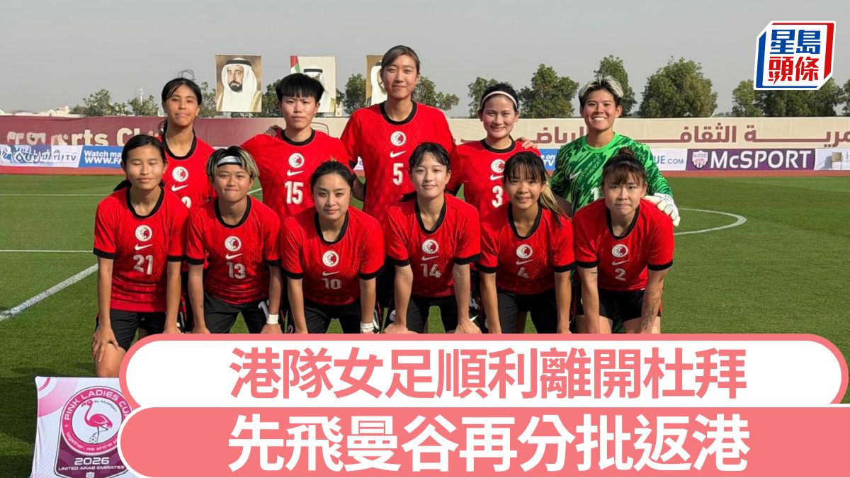 因出戰「Pink Ladies Cup 2026」而身處杜拜的港隊女足今日透過足總發聲明,表示已於今早順利登機離開當地,並會先飛往曼谷,再在抵埗後分批回港。 足總今午在社交媒體上發文,表示港隊女足今早已順利離開杜拜。聲明指:「中國香港女子代表隊今早已順利登機,離開杜拜前往曼谷,抵埗後將按航班安排分批返港。」 足總亦在聲明中感激各界對職球員的關心與支持。 早前已宣布退賽 足總亦指球隊現時已停止一切外