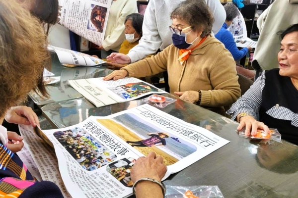 长辈们仔细看着属于自己独一无二的“生命特刊”。(弘光科大提供)