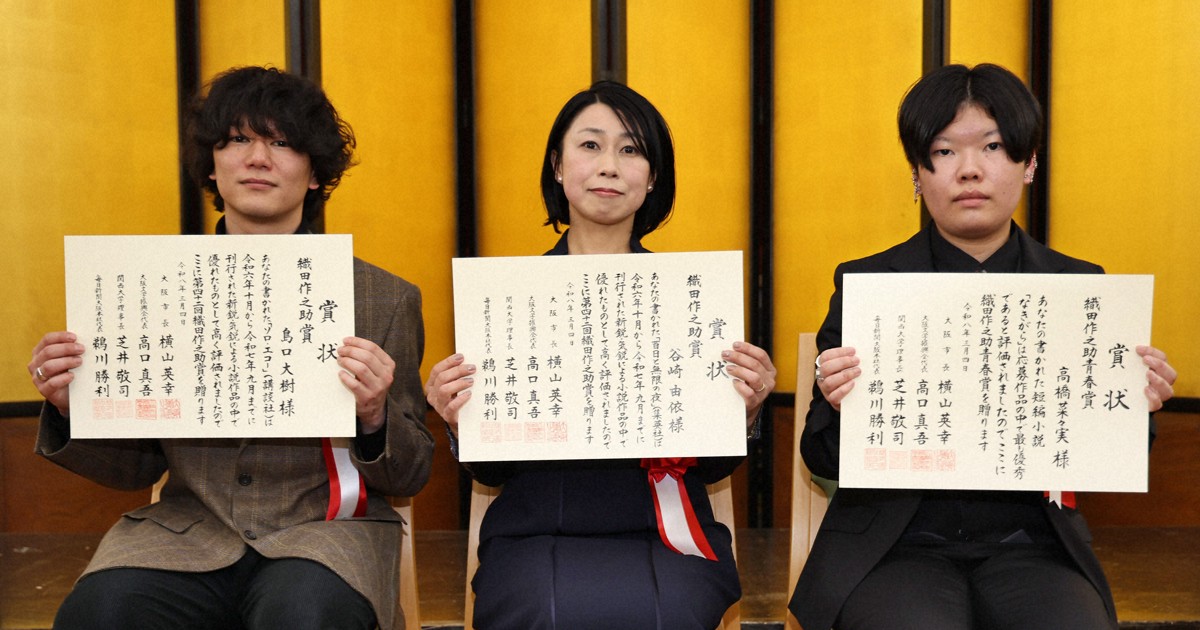 織田作之助賞贈呈式 受賞の島口さんと高橋さん、世界情勢に言及