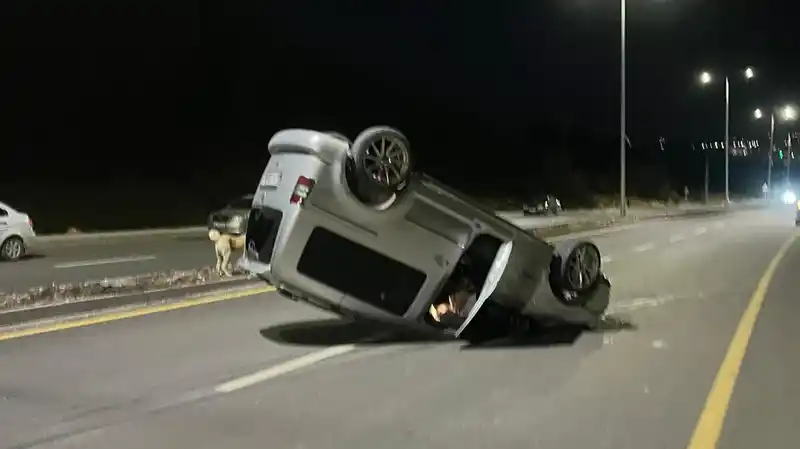 hafif ticari araç takla attı