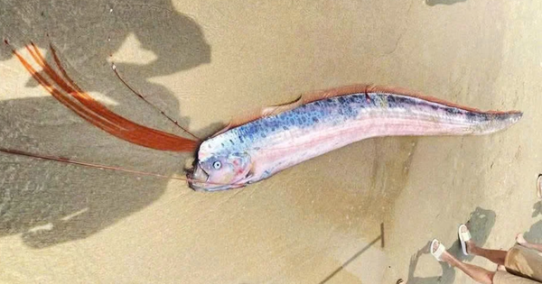 Sáng 4/3, người dân và du khách tại khu vực bãi biển phường An Hải (TP Đà Nẵng) bất ngờ phát hiện xác một con cá lớn có hình dáng lạ mắt trôi dạt vào bờ.