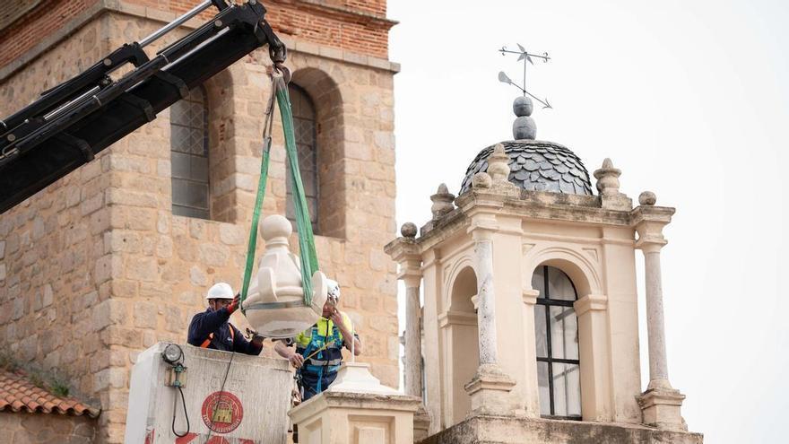 Las dos cráteras del Hornito de Santa Eulalia han sido colocadas en la mañana de este miércoles, devolviendo al histórico monumento emeritense uno de sus elementos ornamentales más característicos. Las piezas han sido elaboradas por la artesana Luisa Díaz Liviano, siguiendo las indicaciones del Consorcio de la Ciudad Monumental de Mérida, con el objetivo de reproducir fielmente las originales y mantener la imagen tradicional de este céntrico enclave situado junto a la basílica.