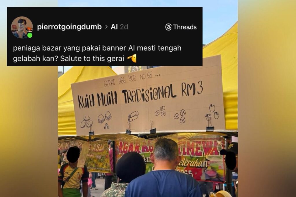 PETALING JAYA – Tindakan segelintir peniaga bazar menggunakan ‘banner’ rekaan kecerdasan buatan (AI) mengundang rasa kurang senang dalam kalangan pengunjung apabila didakwa tidak menarik dan mengelirukan. Menerusi satu hantaran di laman Threads oleh @Pierrotgoingdumb, kelihatan sebuah gerai menjual kuih-muih tradisional hanya menggunakan banner ringkas bertulis tangan berbanding gerai lain yang sarat dengan grafik berunsur AI. ... Read more The post Pengunjung rimas peniaga guna kain rentang rekaan AI appeared first on Kosmo Digital .
