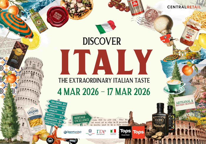 ท็อปส์ ธุรกิจกลุ่มฟู้ด ในเครือเซ็นทรัล รีเทล ร่วมกับสถานเอกอัครราชทูตอิตาลีประจำประเทศไทย และสำนักงานพาณิชย์อิตาเลียนประจำประเทศไทย (ITA) ชวนมา ช้อปแบบฟิน ๆ กับงาน ‘Discover Italy: The Extraordinary Italian Taste’ เทศกาลที่รวบรวมวัตถุดิบต้นตำรับคุณภาพจากหลากหลายแคว้นทั่วอิตาลีกว่า 1,364 รายการ ครบครันทั้งวัตถุดิบพร้อมปรุง ของหวาน และไอเท็ม Made in Italy ที่ผ่านการคัดสรรรสชาติแท้ หายาก และโดดเด่นในแบบอิตาเลียนแท้ พร้อมเปลี่ยนทุกมื้อธรรมดาให้กลายเป็นช่วงเวลาพิเศษ โดยมีไฮไลต์สินค้าพรีเมียมที่ไม่ควรพลาด อาทิ Dalla Costa Tricolor Smileyworld Pasta With Tomato And Spinach พาสต้ารูปหน้ายิ้มสีสันจากธรรมชาติ 100% Guglielmi Puglia IGP Extra Virgin Olive Oil น้ำมันมะกอกเอ็กซ์ตราเวอร์จิ้นจากแคว้นปูเลีย Zanetti Mascarpone Italiano ชีสเนื้อนุ่มสำหรับเมนูต้นตำรับ […]