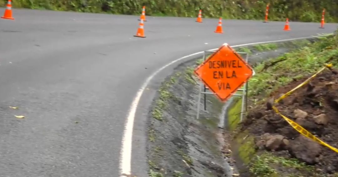 Talud amenaza con afectar parte de la vía. Publicado en Repretel .