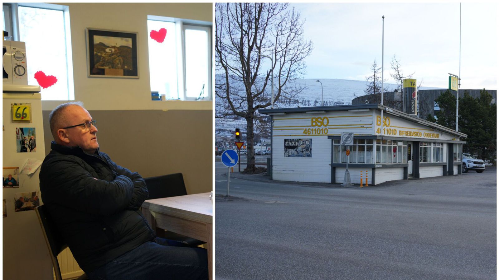 Eitt helsta kennileiti Akureyrar verður rifið á næstu mánuðum. Leigubílstjóri sem hefur starfað í húsinu í tæp 30 ár segir verulega sorglegt og erfitt að kveðja starfstöðina. Ekki er ljóst hvað verður um starfsemina enn sem komið er.