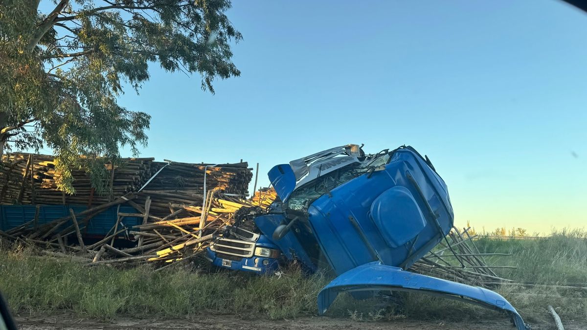 El siniestro ocurrió a la altura del kilómetro 952. Ambos vehículos terminaron fuera de la calzada y la carga de madera quedó esparcida sobre la ruta. No hubo personas lesionadas.