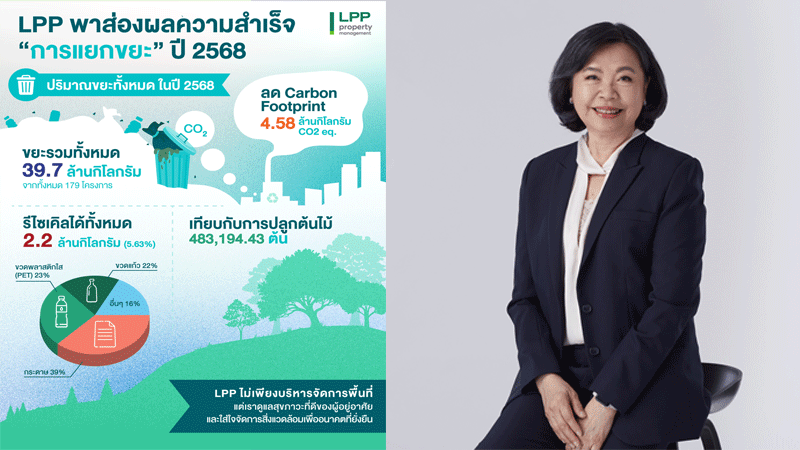 แอล พี พี พรอพเพอร์ตี้ มาเนจเมนท์ (LPP)  เผยปี 2568 คัดแยกขยะรีไซเคิลได้กว่า 2.2 ล้านกิโลกรัม จาก 179 โครงการที่เข้าร่วม พร้อมเดินหน้าขยายผลการบริหารการจัดการสิ่งแวดล้อมให้ครอบคลุมทุกมิติภายในปี 2569 นางสาวสมศรี เตชะไกรศรี กรรมการผู้จัดการ บริษัท แอล พี พี พรอพเพอร์ตี้ มาเนจเมนท์ จำกัด (LPP) ผู้ดำเนินธุรกิจบริหารจัดการโครงการอสังหาริมทรัพย์ครบวงจร เปิดเผยว่า จากรายงานสรุปผลการดำเนินงานระหว่างเดือน ม.ค.– ธ.ค. 2568 ของ LPP เป็นจำนวนขยะรวมทั้งหมด 39,748,123.59 กิโลกรัม โดยสามารถบริหารจัดการคัดแยกขยะรีไซเคิลได้รวมทั้งสิ้น 2,238,796.06 กิโลกรัม ซึ่งการคัดแยกขยะอย่างมีประสิทธิภาพนี้ส่งผลเชิงบวกต่อสิ่งแวดล้อมได้อย่างมาก โดยสามารถลดปริมาณคาร์บอนฟุตพริ้นท์ (Carbon Footprint) ได้สูงถึง 4,579,770.78 กิโลกรัม / CO2 eq. หรือเทียบเท่ากับการปลูกต้นไม้เพื่อดูดซับก๊าซคาร์บอนไดออกไซด์จำนวน 483,194.43 ต้น โดยมีสัดส่วนประเภทขยะที่คัดแยกได้สูงสุด […]