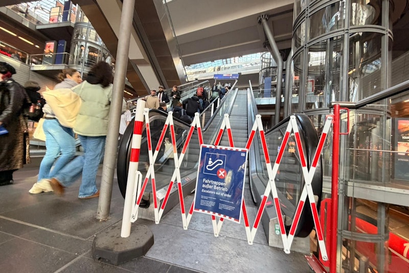 Seit zwei Wochen stehen im Berliner Hauptbahnhof die Rolltreppen still. Für Mütter mit Kinderwagen, Rollstuhlfahrer und Senioren wird der Weg zum Gleis zum Kraftakt.