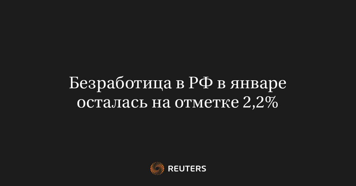 МОСКВА, 4 мар (Рейтер) - Безработица в России в январе осталась вблизи исторического минимума - 2,2% экономически активного населения, как и месяцем ранее, сообщил Росстат.