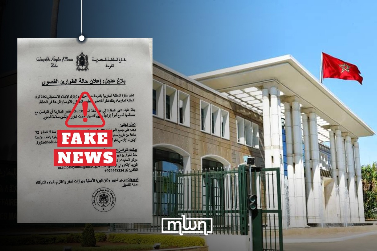 Casablanca – Morocco’s embassy in Doha has urged Moroccan citizens in Qatar to rely on official information sources and avoid spreading unverified reports as misinformation tends to surge during periods of regional tension and uncertainty. Qatar has been experiencing a series of airstrikes from Iran targeted towards US airbases and different parts of the country […] The post Morocco’s Embassy in Doha Urges Citizens to Rely on Official Channels, Warns Against Misinformation appeared first on Morocco World News .