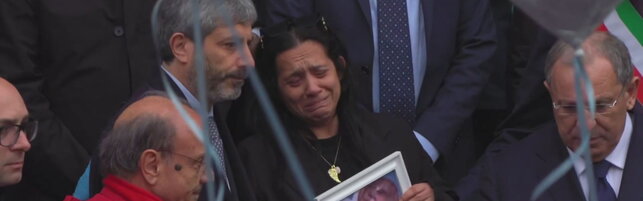 All'uscita del feretro in piazza si è levato un lunghissimo applauso mentre un cielo sono stati fatti volare centinaia di palloncini bianchi. Per l'ultimo saluto al bimbo la folla ha intonato la canzone "Guerriero" di Marco Mengoni: un omaggio alla definizione "piccolo guerriero" che mamma Patrizia ha più volte usato per suo figlio, e che si è fatta anche tatuare su un polso.