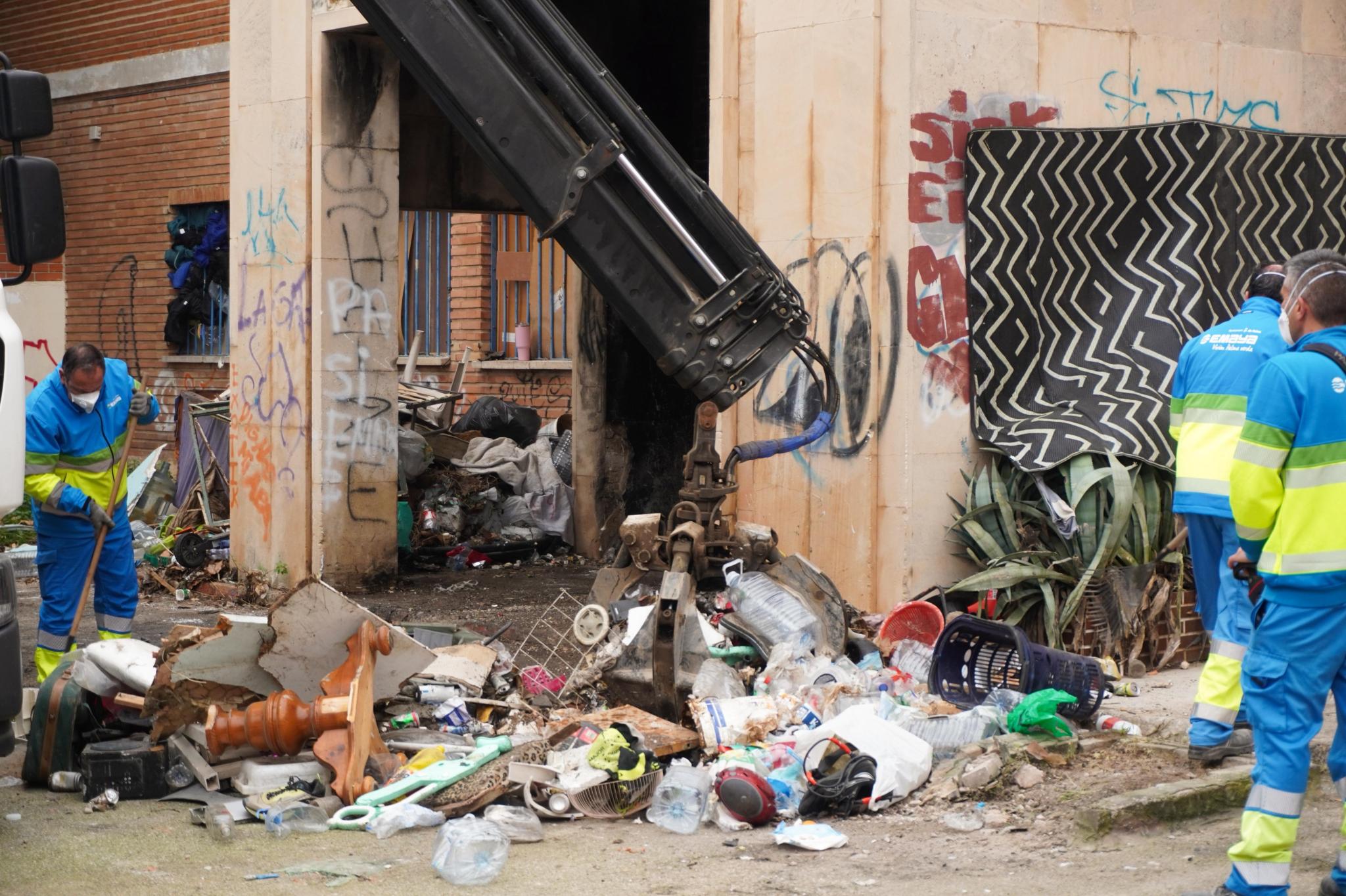 Operarios de Emaya acudieron a la entrada del recinto carcelario por el lado de la Carretera de Valldemossa. El objetivo es reducir el riesgo de incendios, que en las últimas semanas se han multiplicado. Una situación que ha enfrentado a Cort con la Plataforma de Afectados por la Hipoteca (PAH).