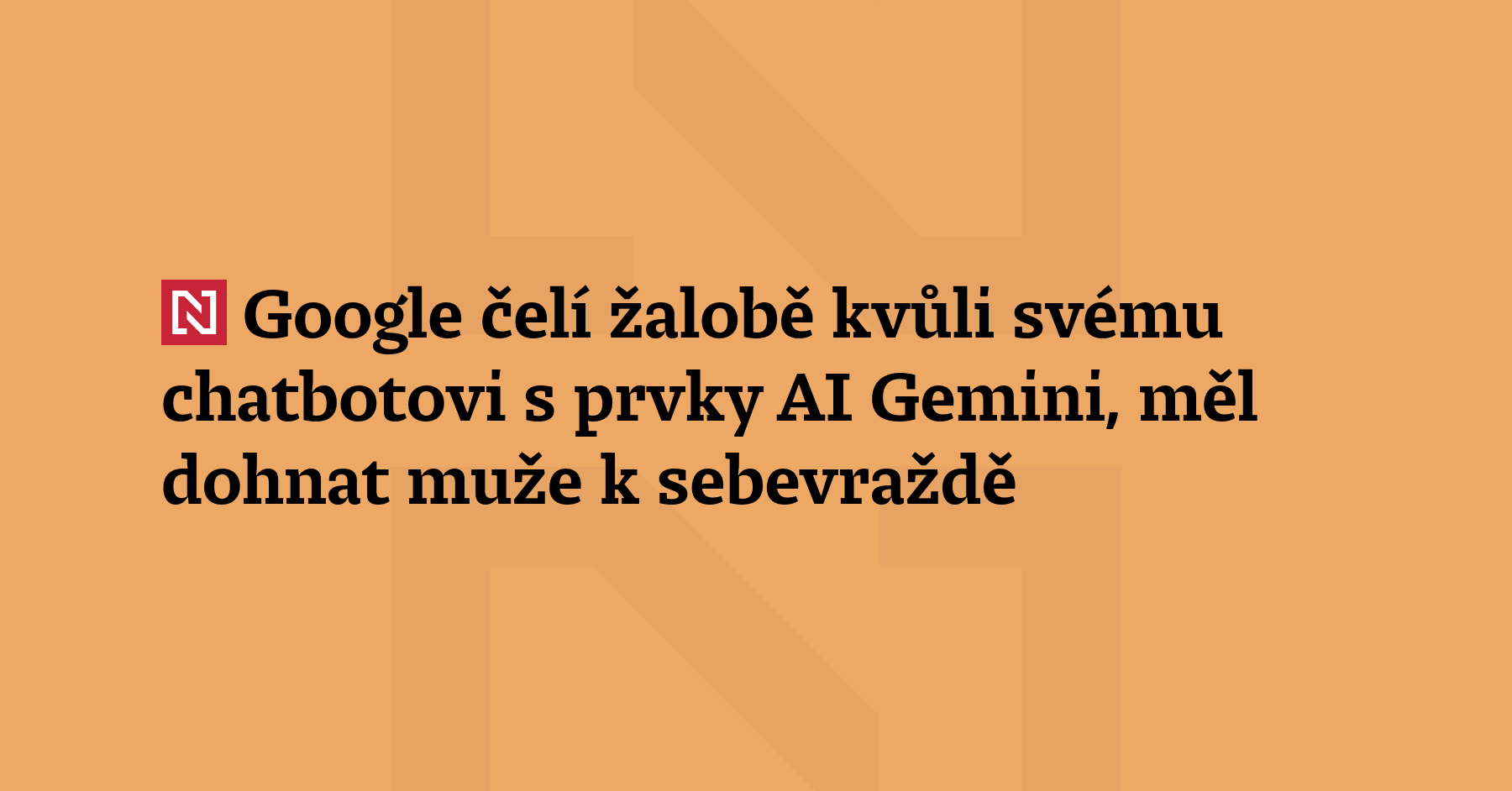 Americká technologická společnost Google čelí žalobě kvůli svému chatbotu s prvky umělé inteligence Gemini. Šestatřicetiletý muž z Floridy, který mimo jiné zvažoval spáchání útoku s velkým počtem obětí na životech. podle své rodiny spáchal pod vlivem Google chatbota sebevraždu. (Bloomberg)