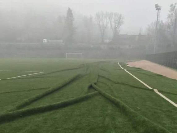 Il ministro in città per un'iniziativa legata alla campagna per il referendum sulla giustizia. Il manto in erba sintetica si è sollevato