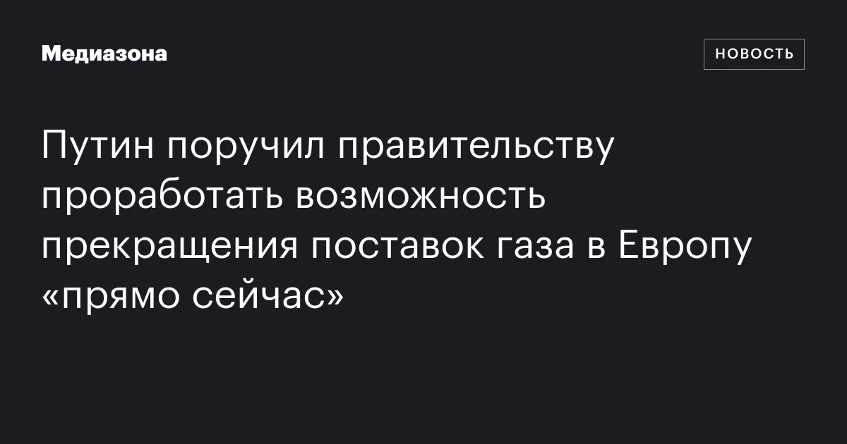 Путин поручил правительству проработать возможность прекращения поставок газа в Европу «прямо сейчас»