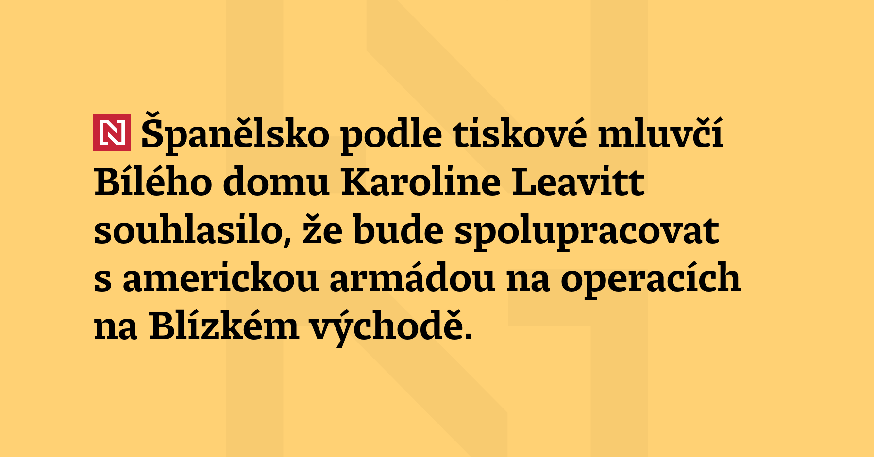 Španělsko podle tiskové mluvčí Bílého domu Karoline Leavitt souhlasilo, že bude spolupracovat s americkou armádou na operacích na Blízkém východě. Madrid na její tvrzení zatím nereagoval. Španělský ministr zahraničí José Manuel Albares se v pondělí sdělil, že Španělsko nedovolí Spojeným státům používat společně operované základny v jižním Španělsku k provedení jakýchkoliv útoků, které nejsou pokryty chartou OSN. Americký prezident […]
