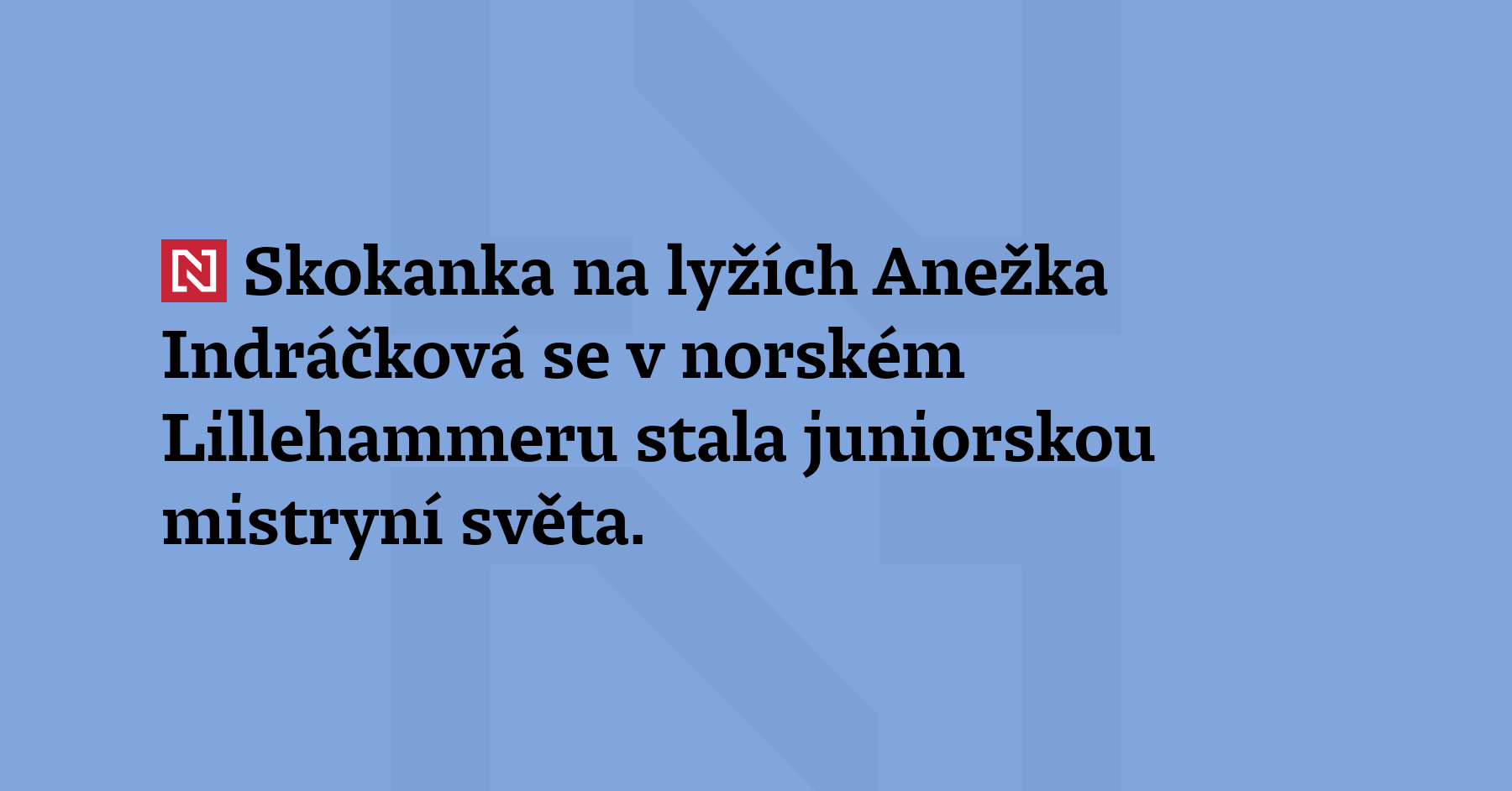 Skokanka na lyžích Anežka Indráčková se v norském Lillehammeru stala juniorskou mistryní světa. Na mládežnickém šampionátu vybojovala první českou medaili od roku 2019 a první pro ženský skok v historii. (České noviny)