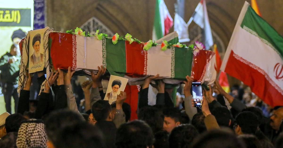 O funeral de Ali Khamenei foi adiado por motivos de segurança devido à crescente instabilidade regional, mas milhares de pessoas saíram às ruas de Najaf, no Iraque, para realizar um cortejo funerário simbólico em protesto.