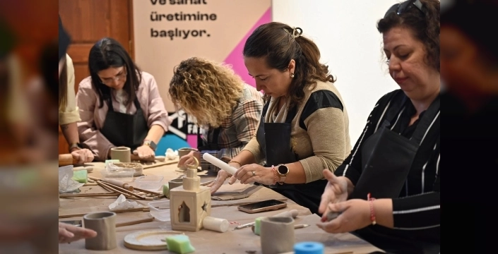 Bursa'da Ramazan etkinlikleri kapsamında düzenlenen seramik atölyesinde kadınlar, geleneksel motifleri hayal güçleriyle birleştirerek özgün eserler yarattı.