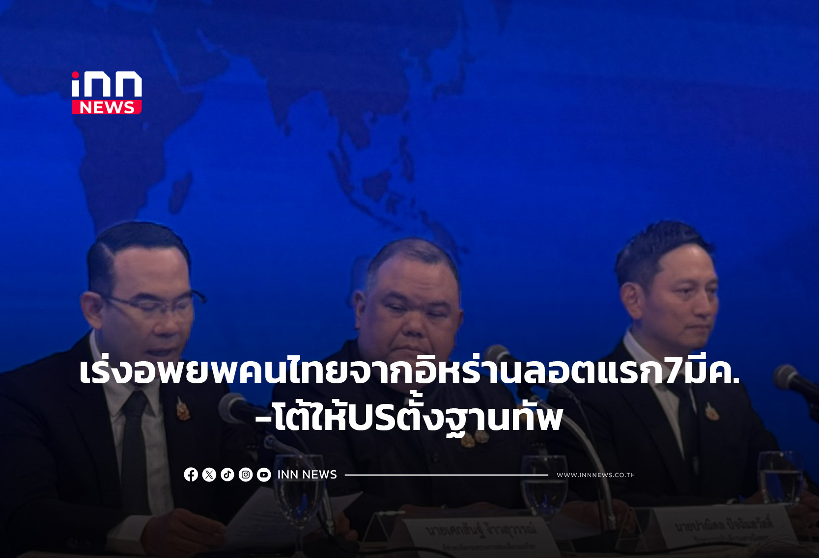 ศูนย์แถลงข่าวตะวันออกกลางวันแรก ยืนยัน เร่งอพยพคนไทย 7 มี.ค. โต้ข่าวไทยให้สหรัฐฯ ตั้งฐานทัพ ขณะพลังงาน ยันน้ำมันไม่ขาด-ราคาไม่พุ่ง