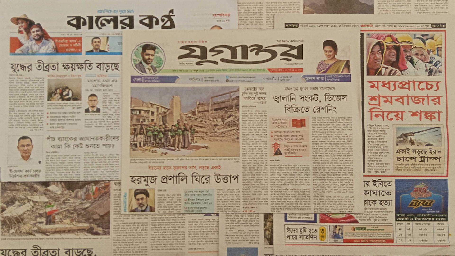 প্রতিদিন পাঠকের কাছে দেশের আলোচিত ঘটনা, রাজনৈতিক উত্তাপ, অর্থনৈতিক পরিস্থিতি, সমাজের পরিবর্তন এবং বিশ্বমঞ্চের নতুন বার্তা তুলে ধরে সংবাদপত্রগুলো। তথ্যপিপাসুদের তথ্যের চাহিদা মেটাতে সময় সংবাদ দেশের প্রধান প্রধান সংবাদপত্রের গুরুত্বপূর্ণ শিরোনাম পাঠকের সামনে তুলে ধরছে। এক নজরে জেনে নিন দেশের প্রধান সংবাদপত্রগুলোর প্রতিবেদন।দেশের শীর্ষস্থানীয় জাতীয় পত্রিকায় বৃহস্পতিবার (৫ মার্চ) প্রকাশিত কিছু খবর নিচে তুলে ধরা হলো। মধ্যপ্রাচ্যে শ্রমবাজার নিয়ে শঙ্কা - দৈনিক মানবজমিনে প্রধান সংবাদ এটি। প্রতিবেদনে বলা হয়েছে, হামলা, পাল্টা হামলা ও সংঘাতের আগুন ছড়িয়ে পড়েছে মধ্যপ্রাচ্যের উপসাগরীয় অঞ্চলের অর্থনীতি ও শ্রমবাজারে। ইরানে যুক্তরাষ্ট্র ও ইসরাইলের যৌথ হামলার জেরে আকাশসীমা বন্ধ, ফ্লাইট বাতিল ও ভিসা জটিলতা তৈরি হয়েছে দেশে দেশে। এতে কার্যত স্থবির হয়ে পড়েছে মধ্যপ্রাচ্যে বাংলাদেশের কর্মী পাঠানো। এরই মধ্যে আরব আমিরাত ও বাহরাইনে দুইজন বাংলাদেশির মৃত্যুর খবর মিলেছে, আহত হয়েছেন আরও সাতজন। উপসাগরীয় ছয় দেশে প্রায় ৪৫ লাখ প্রবাসী কর্মীর ওপর অনেকটা নির্ভরশীল দেশের রেমিট্যান্স প্রবাহ। যুদ্ধ দীর্ঘায়িত হলে অর্থনীতিতে বড় ধাক্কার আশঙ্কা করছেন সংশ্লিষ্টরা। প্রবাসীদের পরিবারেও বাড়ছে উদ্বেগ-আতঙ্ক।জ্বালানি সংকট, ডিজেল বিক্রিতে রেশনিং - দৈনিক যুগান্তরের প্রথম পাতার খবর এটি। প্রতিবেদনটিতে বলা হয়েছে, মধ্যপ্রাচ্য পরিস্থিতিতে বড় বিপদে পড়তে যাচ্ছে বাংলাদেশ। আমদানির পরিকল্পনা অনুযায়ী জ্বালানি তেল ও গ্যাস পাওয়া যাচ্ছে না বিশ্ববাজারে। বাংলাদেশমুখী তেলের ২টি জাহাজ নির্ধারিত সময়ে আসছে না। এ কারণে ডিজেল বিক্রিতে রেশনিং করার সিদ্ধান্ত নিয়েছে সরকার। পেট্রোল পাম্পগুলোকে চাহিদার ১০ শতাংশ কম ডিজেল দেয়ার নির্দেশ দয়া হয়েছে। এরই মধ্যে ‘তেল পাওয়া যাবে না’ আতঙ্কে পেট্রোল পাম্পগুলোতে দীর্ঘ লাইন পড়েছে। স্বাভাবিকের চেয়ে বেশি তেল বিক্রি ঠেকাতে হিমশিম খেতে হচ্ছে সংশ্লিষ্টদের। এদিকে, এই মাসে তরলীকৃত প্রাকৃতিক গ্যাসের (এলএনজি) দুটি কার্গো দিতে পারবে না বলে জানিয়ে দিয়েছে কাতার এনার্জি। এর পরিবর্তে উন্মুক্ত বাজার (স্পট মার্কেট) থেকে তা কেনার সিদ্ধান্ত নিয়েছিল সরকার। কিন্তু বুধবার পর্যন্ত কোনো বিক্রেতার খোঁজ পায়নি। এ সপ্তাহের মধ্যে ওই দুই কার্গোর বিকল্প ব্যবস্থা করতে না পারলে ১৫ মার্চের পর দেশে ভয়াবহ গ্যাস সংকট দেখা দিতে পারে। শুরু হতে পারে গ্যাসেরও রেশনিং। তখন বিদ্যুৎকেন্দ্রে গ্যাস সরবরাহ কমিয়ে দিয়ে শিল্প ও বাসাবাড়িতে গ্যাস সরবরাহ চালু রাখার সিদ্ধান্ত হয়েছে।সরকারের সুলভ মূল্যে বিক্রি কার্যক্রম নামেমাত্র- দৈনিক সমক