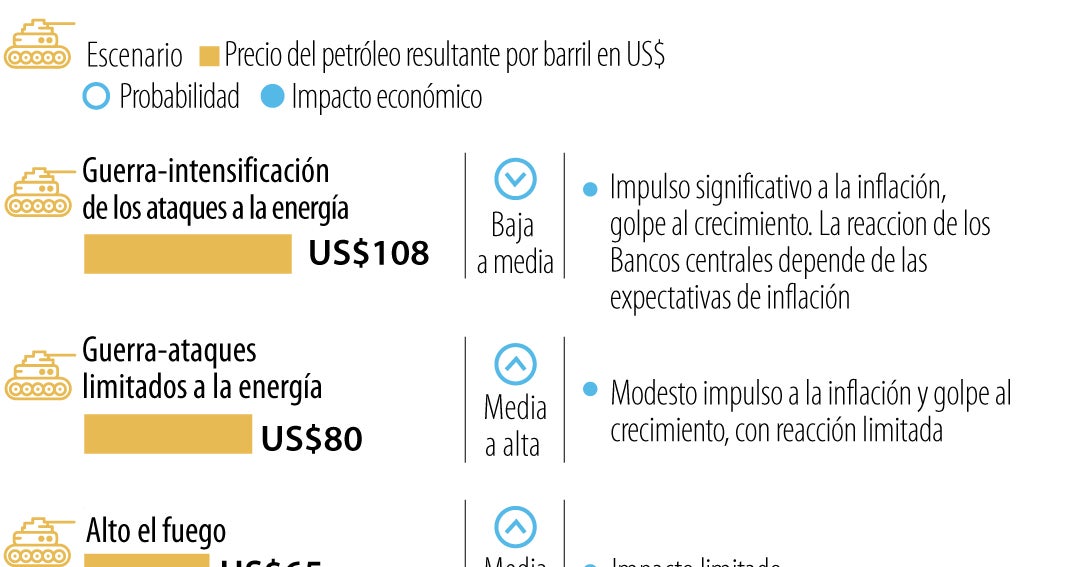 Bloomberg Economics destacó que para EE.UU., incluir un precio del petróleo a US$108 por barril añade aproximadamente 0,8 puntos a la inflación para el final de 2026
