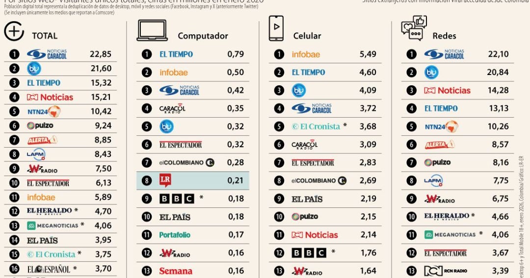 Las páginas de noticias que lideraron en enero