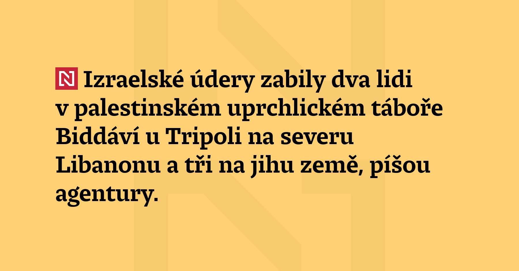 Izraelské údery zabily dva lidi v palestinském uprchlickém táboře Biddáví u Tripoli na severu Libanonu a tři na jihu země, píšou agentury. (ČTK)