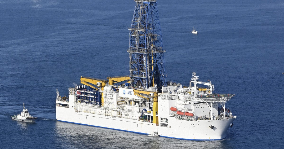 海上で「ちきゅう」鑑賞 レアアース採取の探査船 静岡・清水港で