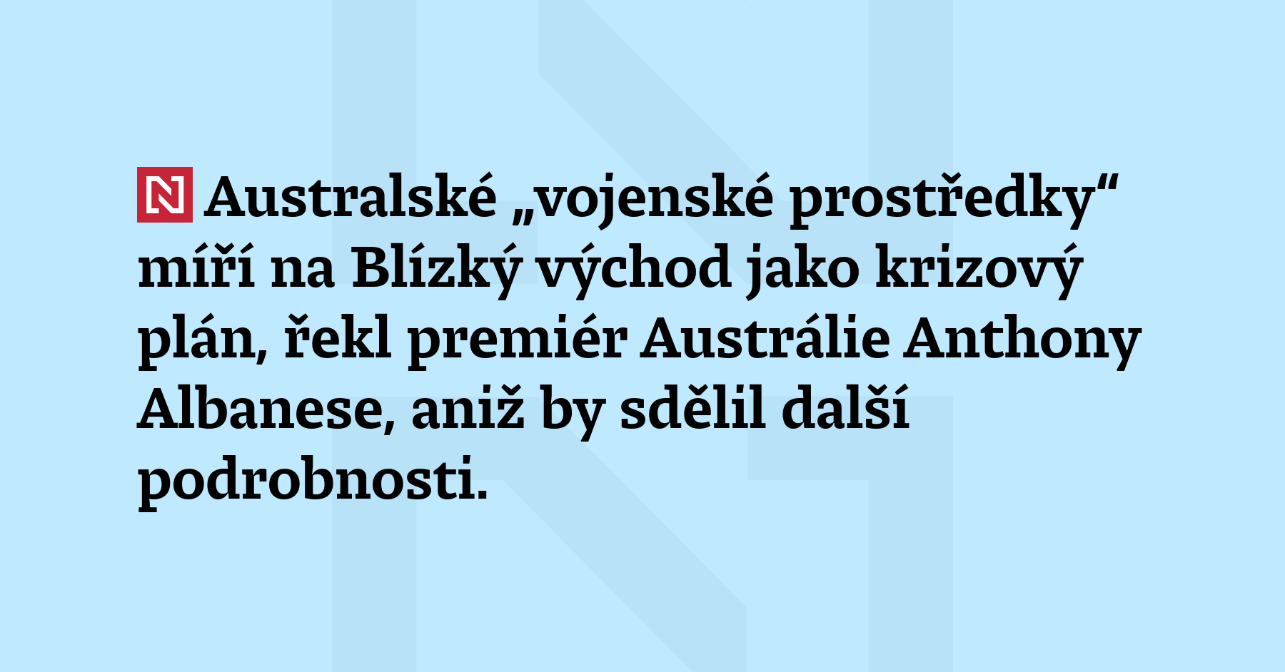 Australské „vojenské prostředky“ míří na Blízký východ jako krizový plán, řekl premiér Austrálie Anthony Albanese, aniž by sdělil další podrobnosti. Televizní stanice SBS News informovala, že byla nasazena dvě vojenská letadla. (Al-Džazíra)