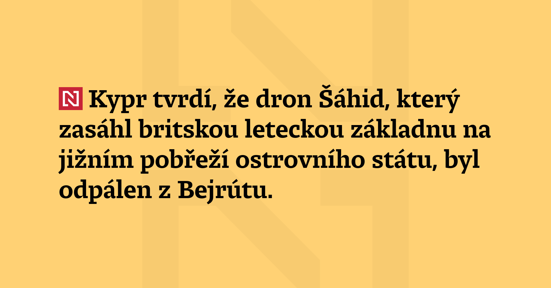 Kypr tvrdí, že dron Šáhid, který zasáhl britskou leteckou základnu na jižním pobřeží ostrovního státu, byl odpálen z Bejrútu. Kyperský úředník dnes potvrdil, že dron, který poškodil hangár na základně RAF Akrotiri krátce po pondělní půlnoci, vzlétl z libanonské metropole. (AP)