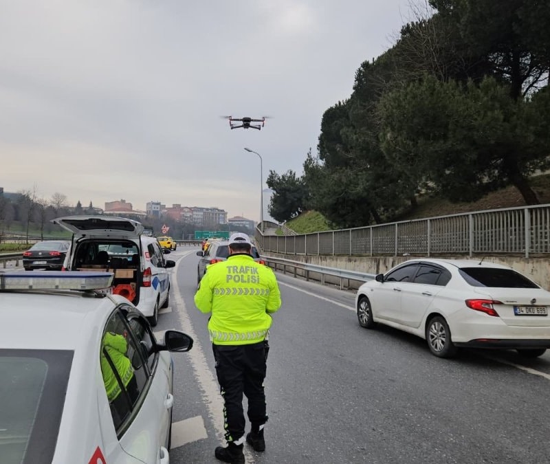 Sarıyer'de taralı alanı ihlal ederek trafikte ‘kaynak' yaptığı belirlenen sürücüler drone ile tespit edilirken, 10 kişiye ise para cezası kesildi.