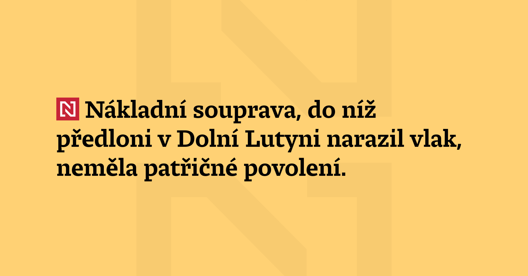 Nákladní souprava, do níž předloni v Dolní Lutyni narazil vlak, neměla patřičné povolení. Nemohla bezpečně přejet přes přejezd, sdělila Drážní inspekce. (ČTK)