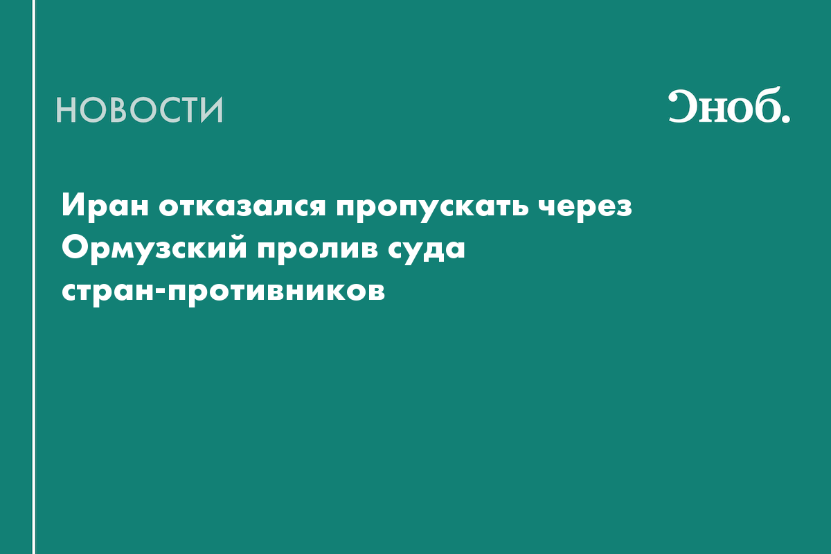 Иран будет контролировать Ормузский пролив до тех пор, пока не закончится вооружённый конфликт. Страна не пропустит суда вражеских государств, заявил замглавы МИД Ирана Казем Гарибабади.
