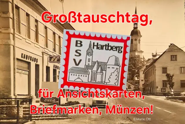 Der Briefmarken-Sammler-Verein Hartberg lädt am Samstag, 15. März 2026 von 8-13 Uhr zum Großtauschtag in die Stadtwerke-Hartberg-Halle ein! Ein Tauschtag für Ansichtskarten, Briefmarken, Briefe und Münzen, sowie einem Sonderpostamt der Österr. Post mit Philatelietag! Zusätzlich erfolgt die Präsentation von drei offiziellen Briefmarken der Österreichischen Post. Die Markenkünstlerin der Treuebonusmarke, Brigitte Heiden wird persönlich anwesend sein und steht für Autogrammwünsche zur Verfügung....