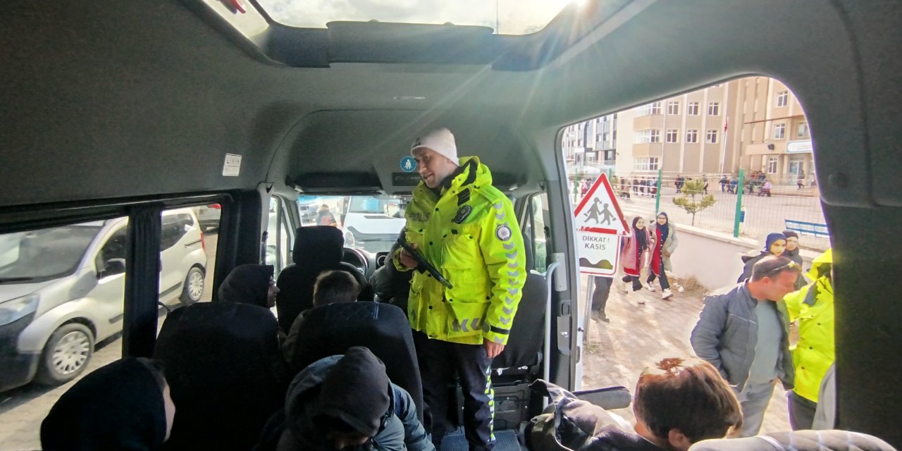 Sivas'ın Şarkışla ilçesinde trafik polisleri tarafından okul servisi minibüslerine yönelik emniyet kemeri denetimi yapıldı.